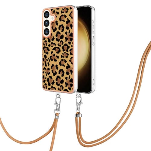 Estuche para teléfono Samsung Galaxy S24 5G Imd doble cara con galvanoplastia y cordón (Estampado de Leopardo)