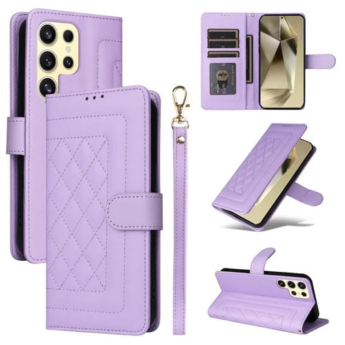 Estuche para Teléfono Samsung Galaxy S24 Ultra 5G con Tapa de Cuero y Entramado de Diamantes (Púrpura Claro)