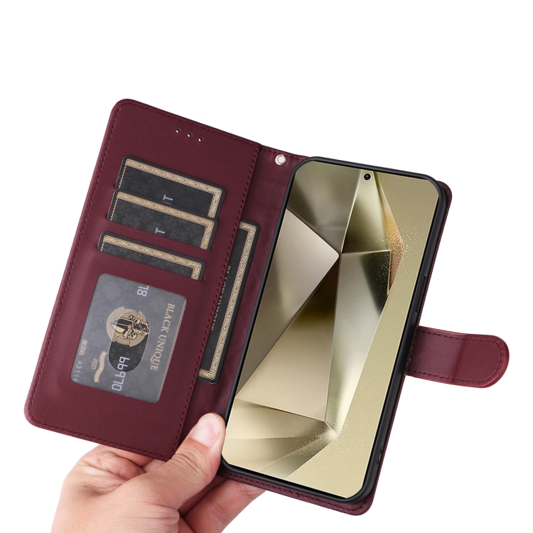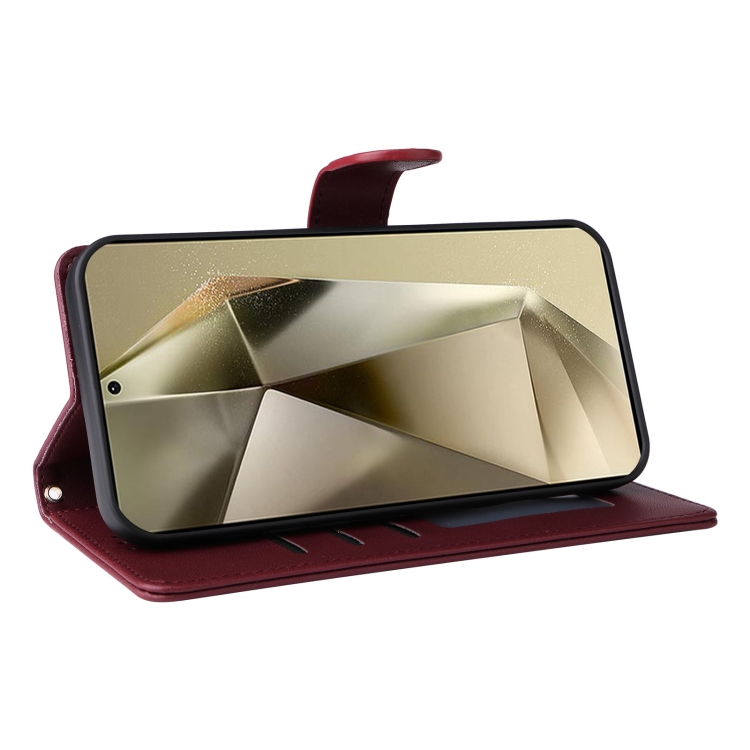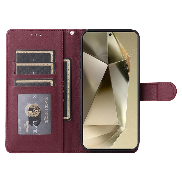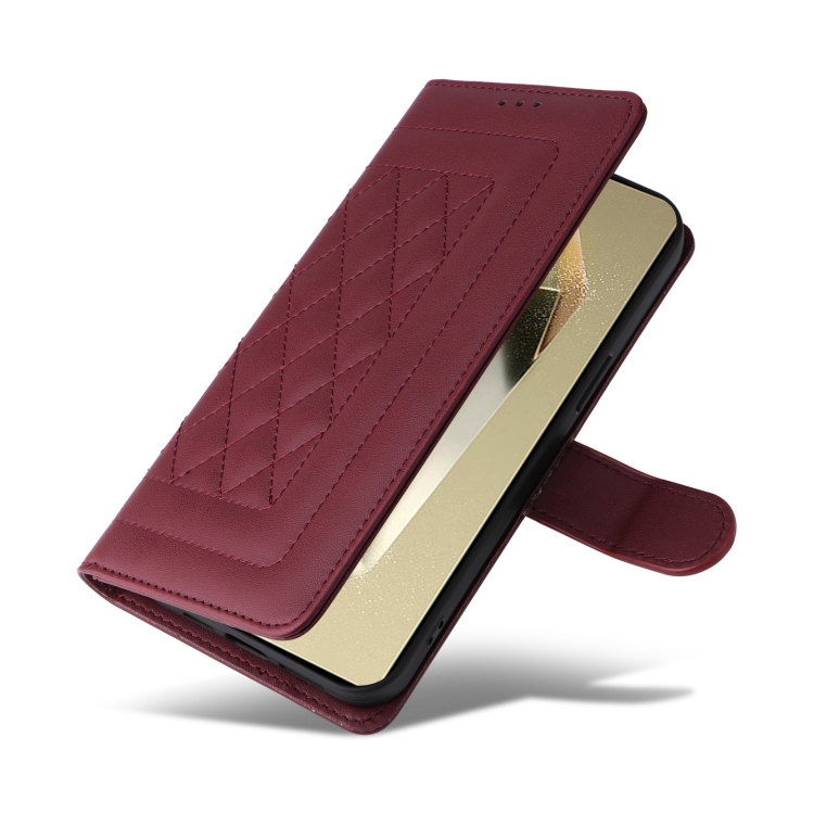 Estuche para Teléfono Samsung Galaxy S24 Ultra 5G con Tapa de Cuero y Entramado de Diamantes (Rojo Vino)