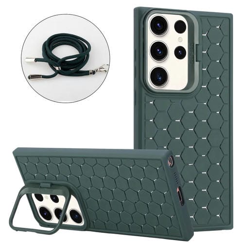 Estuche para teléfono Samsung Galaxy S24 Ultra 5G Magsafe soporte lente panal con cordón (Verde)