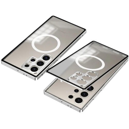 Estuche para Teléfono Samsung Galaxy S24 Ultra 5G Magsafe Esmerilado con Marco de Metal y Hebilla a Presión (Plateado)