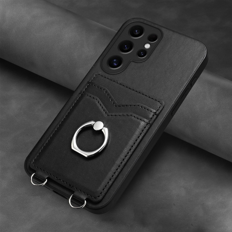 Estuche para Teléfono Samsung Galaxy S24 Ultra 5G R20 con Soporte para Tarjeta con Anillo (Negro)