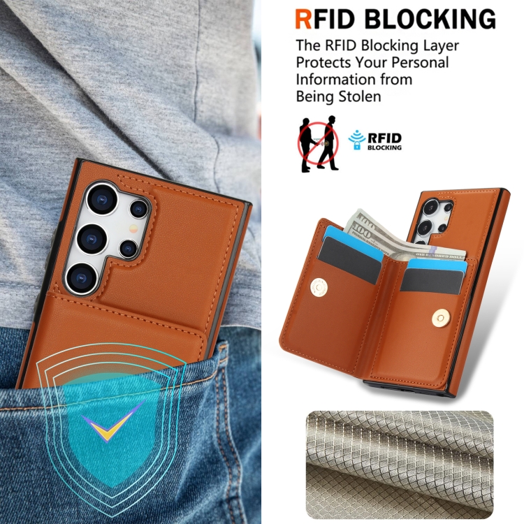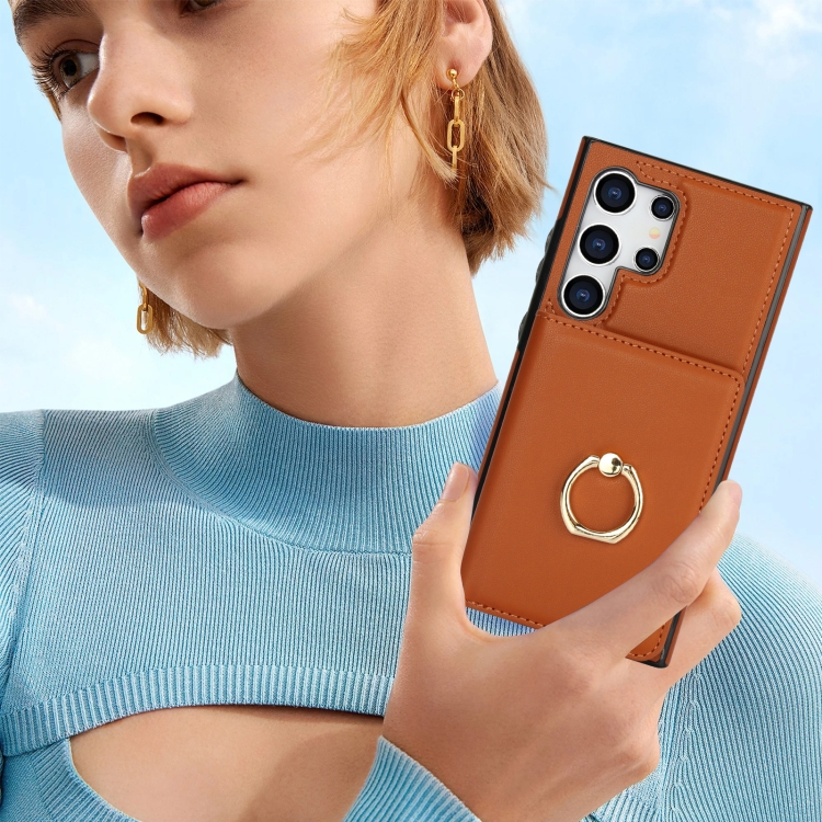 Estuche para teléfono Samsung Galaxy S24 Ultra 5G Rfid Tarjeta Antirrobo con Soporte para Anillo (Marrón)