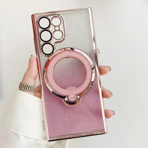 Estuche para Teléfono Samsung Galaxy S24 Ultra 5G Rotación Magsafe Holder TPU con Brillo Degradado (Rosa)