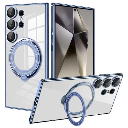 Estuche para Teléfono Samsung Galaxy S24 Ultra Galvanoplastia Magsafe Soporte de Rotación 360 Grados (Azul)