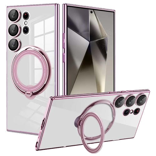 Estuche para Teléfono Samsung Galaxy S24 Ultra Galvanoplastia Magsafe Soporte Rotación 360 Grados a Prueba de Golpes (Rosa)