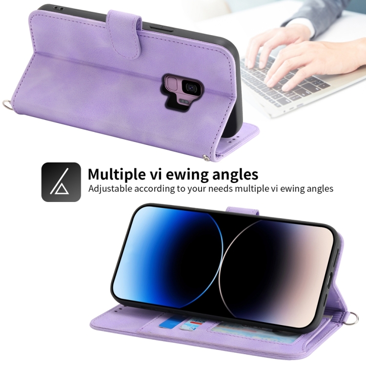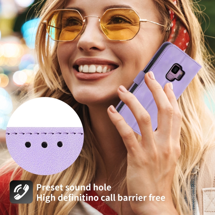 Funda para Teléfono Samsung Galaxy S9 Cuero con Billetera En Relieve y Flores (Púrpura)