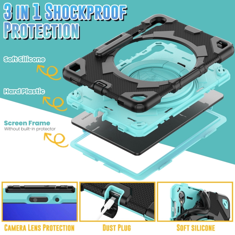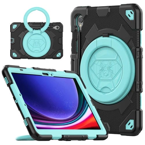 Funda Híbrida para Tablet Samsung Galaxy Tab S9 Spider Rotation Handle de Silicona (Negro Azul Claro)