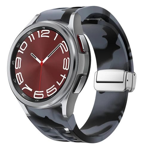 Correa de Silicona para Samsung Galaxy Watch 6 Classic 43/47mm con Hebilla Plateada Plegable Magnética (Camuflaje Gris Negro)