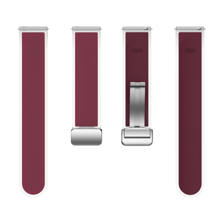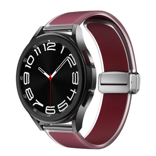 Correa de Silicona para Samsung Galaxy Watch6/5/4 con Hebilla Plateada Magnética Translúcida (Rojo Vino)