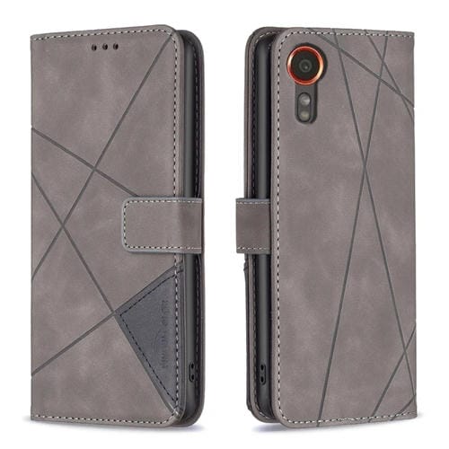 Funda para Teléfono Samsung Galaxy Xcover 7 Cuero Textura de Rombo Hebilla Magnética (Gris)