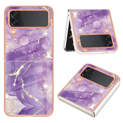 Estuche para Teléfono Samsung Galaxy Z Flip3 5G Imd Doble Cara Mármol Galvanizado (Púrpura)