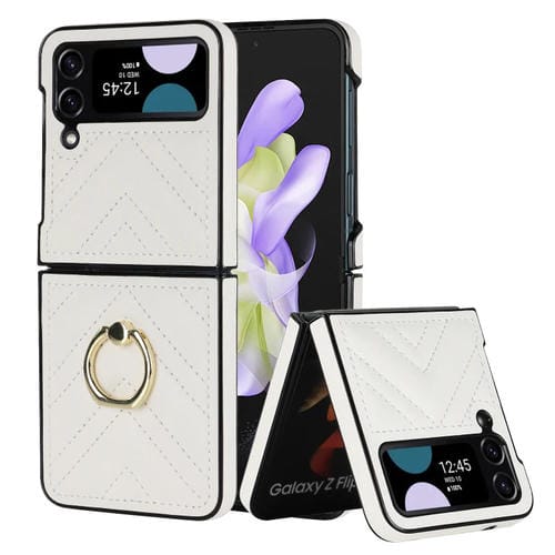 Funda Protectora Samsung Galaxy Z Flip4 Teléfono Plegable Forma de V con Anillo Giratorio (Blanco)