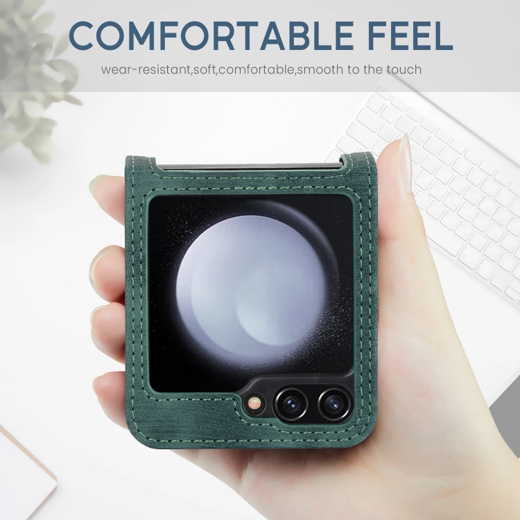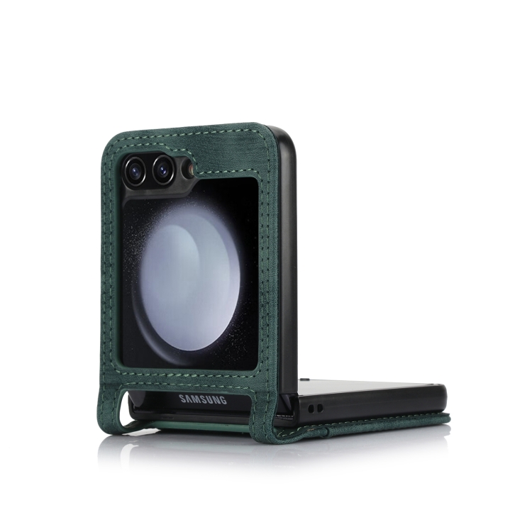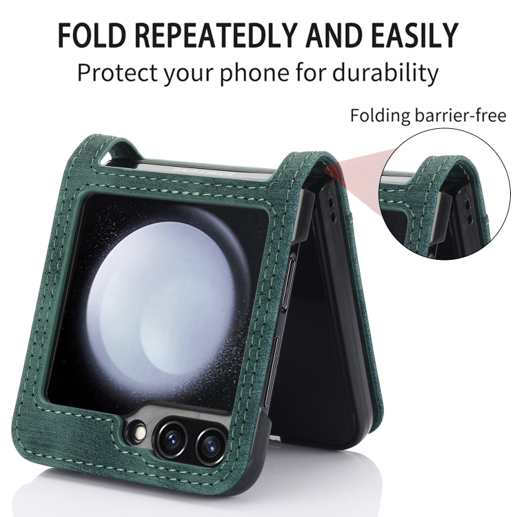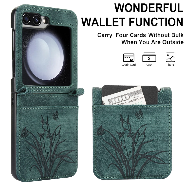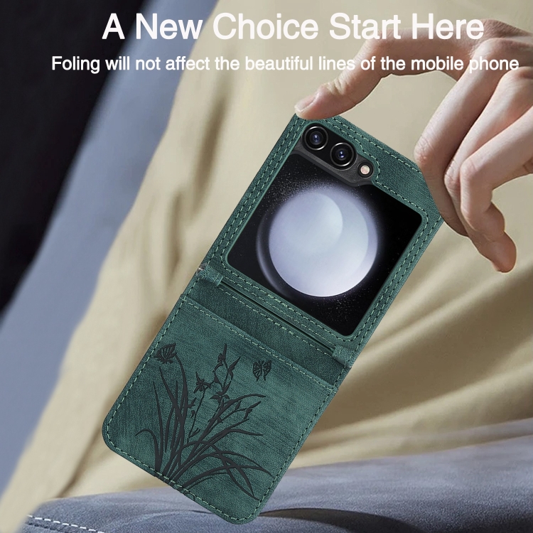 Funda para Teléfono Samsung Galaxy Z Flip5 Cuero Relieve Mariposa Orquídea (Verde)