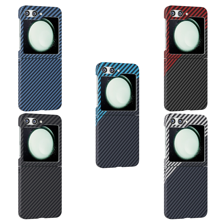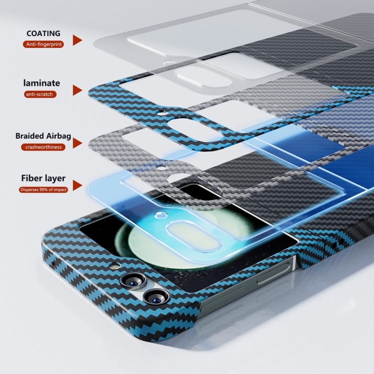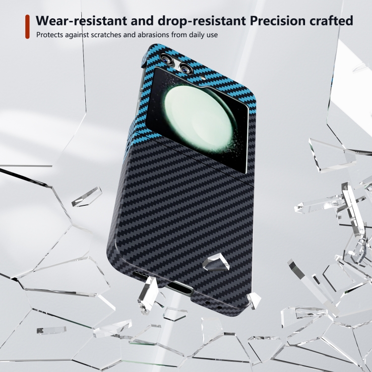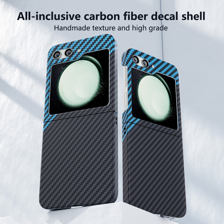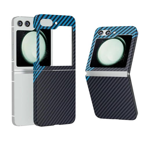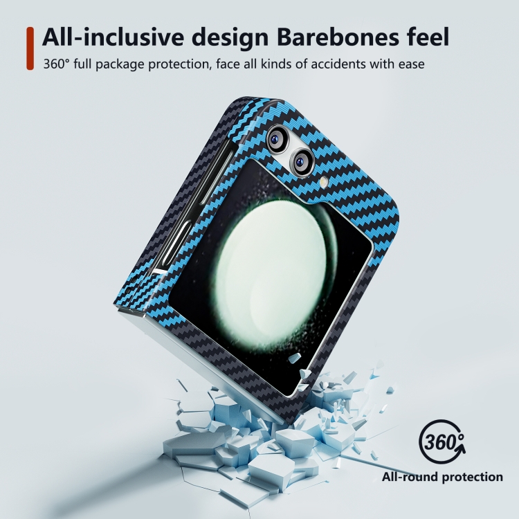 Funda Protectora Samsung Galaxy Z Flip5 Textura Fibra de Carbono con Calcomanía (Gris Azul)