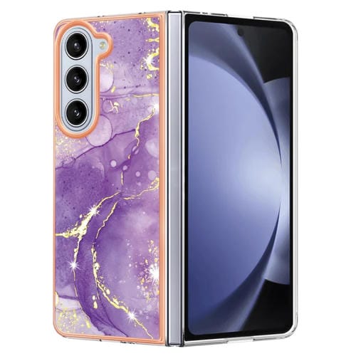 Estuche para teléfono Samsung Galaxy Z Fold5 5G Imd doble cara Mármol Galvanizado (Púrpura)