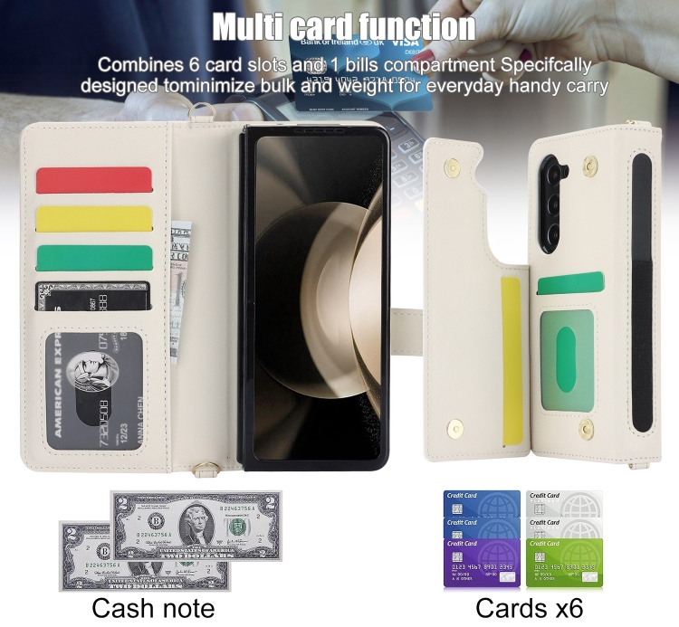 Estuche para Teléfono Samsung Galaxy Z Fold5 Crossbody Cuero Rómbico Multifunción (Blanco)