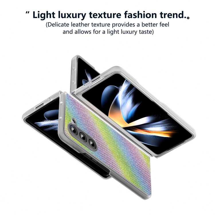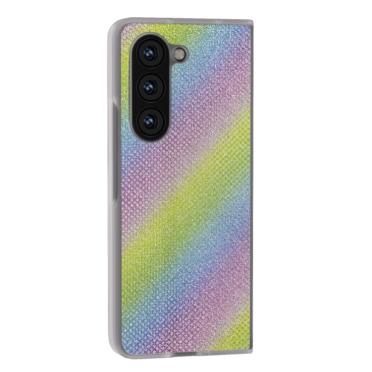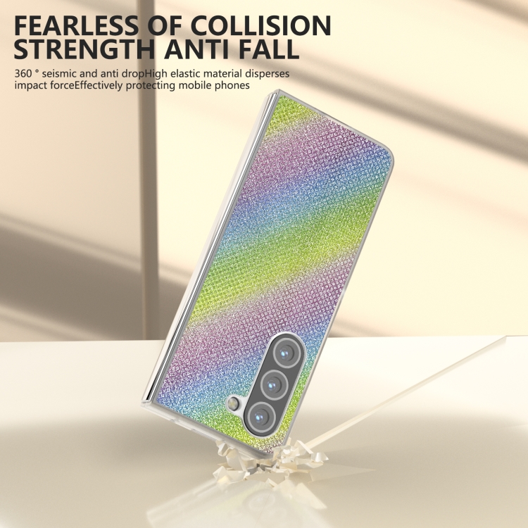 Estuche para Teléfono Samsung Galaxy Z Fold5 Borde Transparente Esmerilado Diamantes (Arco Iris)