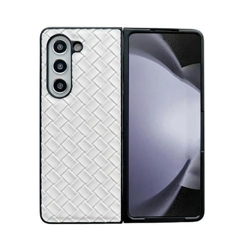 Estuche plegable para teléfono Samsung Galaxy Z Fold5 con textura tejida de PU (Blanco)