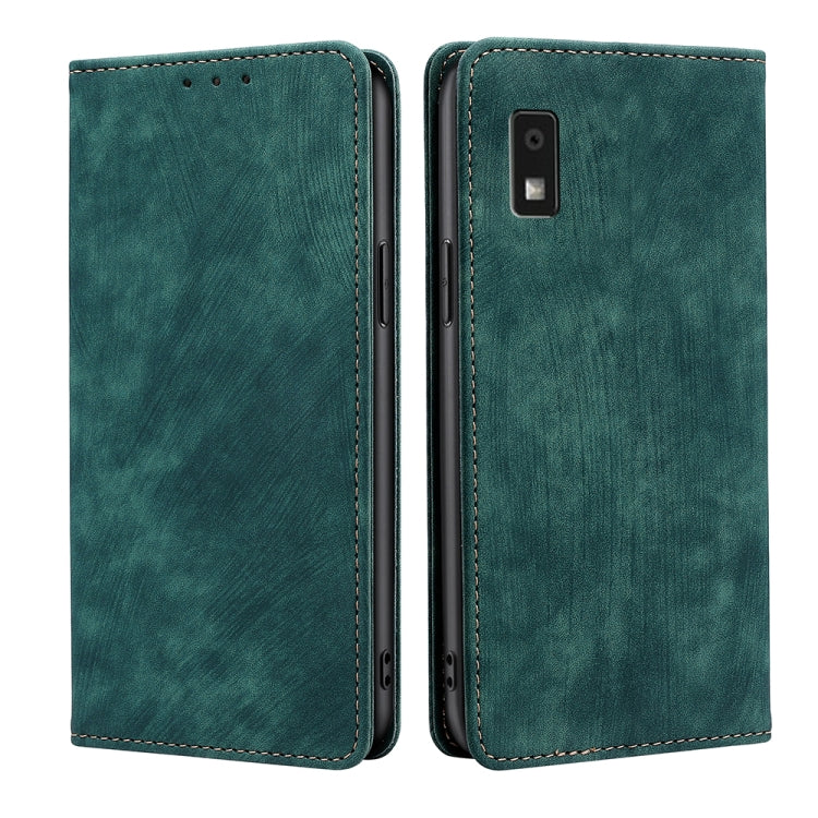Funda de Cuero Magnética para Sharp Aqous Wish 3 con RFID y Cepillo Antirrobo (Verde)