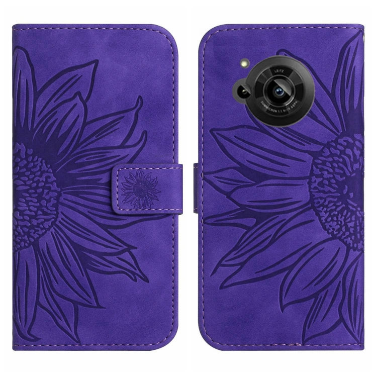Funda Flip de Cuero para Sharp Aquos R7 / P7 con Cordón y Diseño Sun Flower (Púrpura Oscuro)