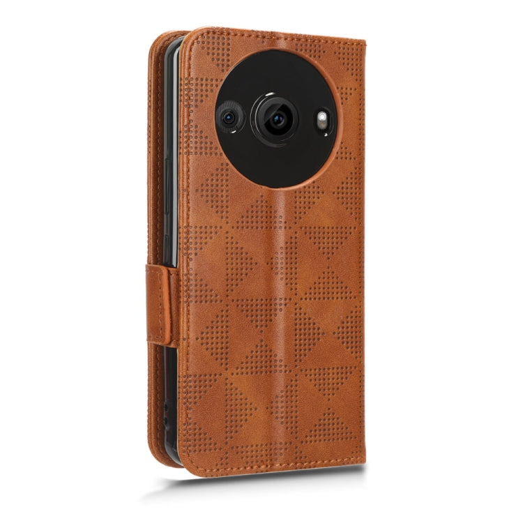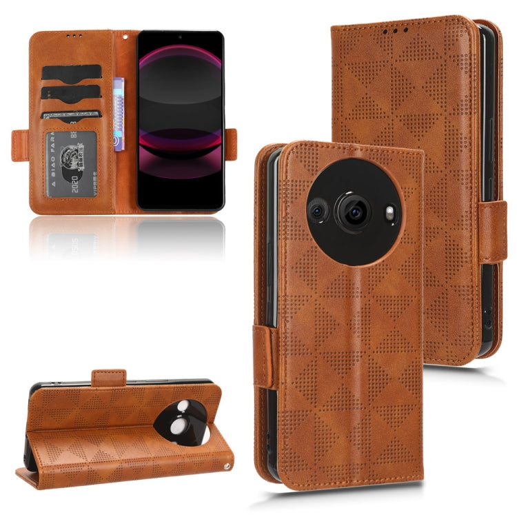 Funda de Cuero para Sharp Aquos R8 Pro con Patrón Triángulo Simétrico (Marrón)