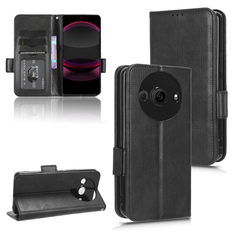 Funda de Cuero para Sharp Aquos R8 Pro con Patrón de Triángulo Simétrico (Negro)