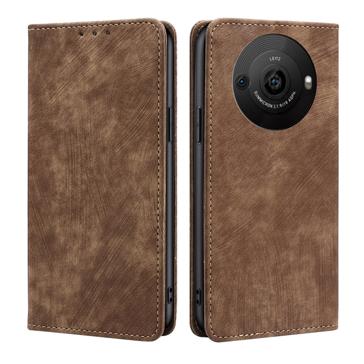 Funda para Sharp Aquos R8 Pro Sh-51D de Cuero Magnético con Protección RFID y Cepillo Antirrobo (Marrón)