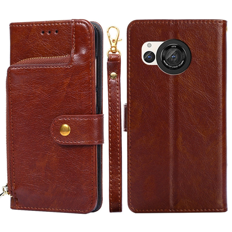 Funda de Cuero con Cremallera para Sharp Aquos R8 Sh-52D (Marrón)
