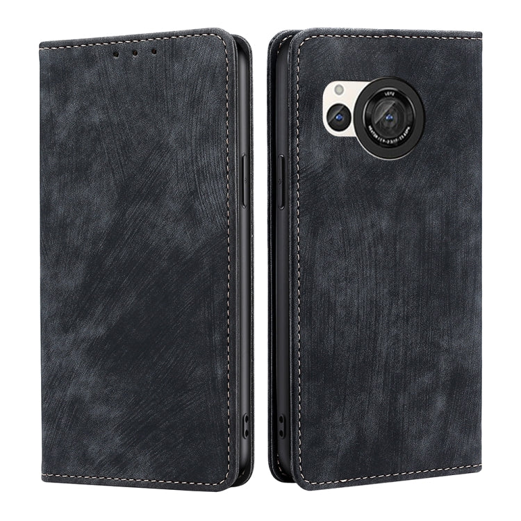 Funda de Cuero Magnética para Sharp Aquos R8 Sh-52D con RFID y Cepillo Antirrobo (Negro)