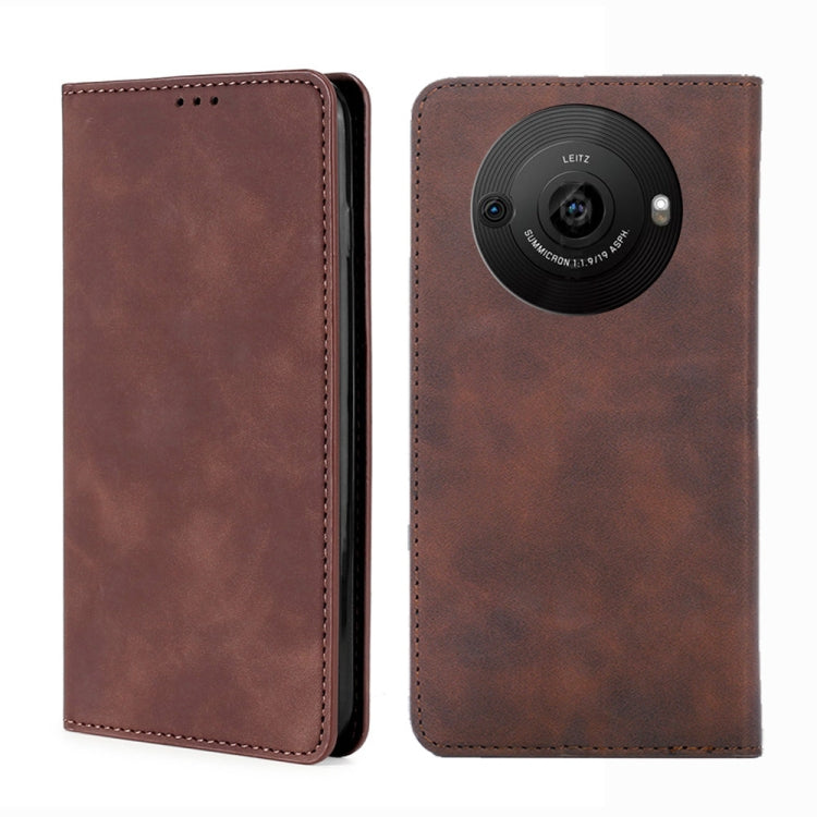 Funda Magnética de Cuero para Sharp Aquos R8 Sh-52D Skin Feel (Marrón Oscuro)
