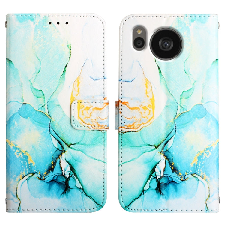 Funda de Cuero con Tapa para Sharp Aquos Sense7 Plus Pt003 Patrón Mármol (Verde)