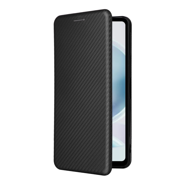 Funda de Cuero para Sharp Aquos Sense8 con Tapa y Textura de Fibra de Carbono (Negro)