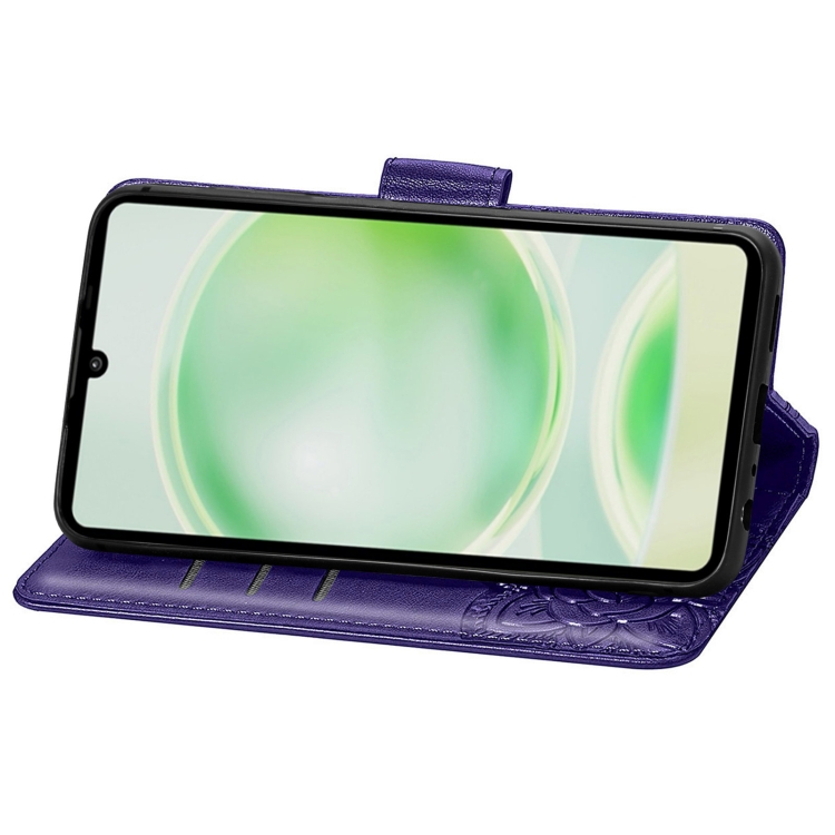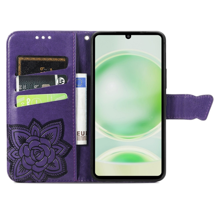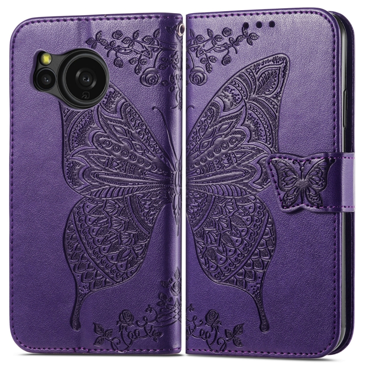 Funda para Sharp Aquos Sense8 de Cuero con Relieve Flor y Mariposa (Púrpura Oscuro)