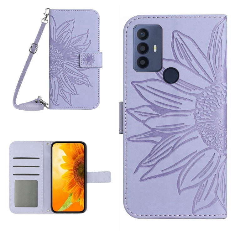 Funda Flip de Cuero para Sharp Aquos V6 y V6 Plus con Cordón y Diseño Sun Flower (Púrpura)