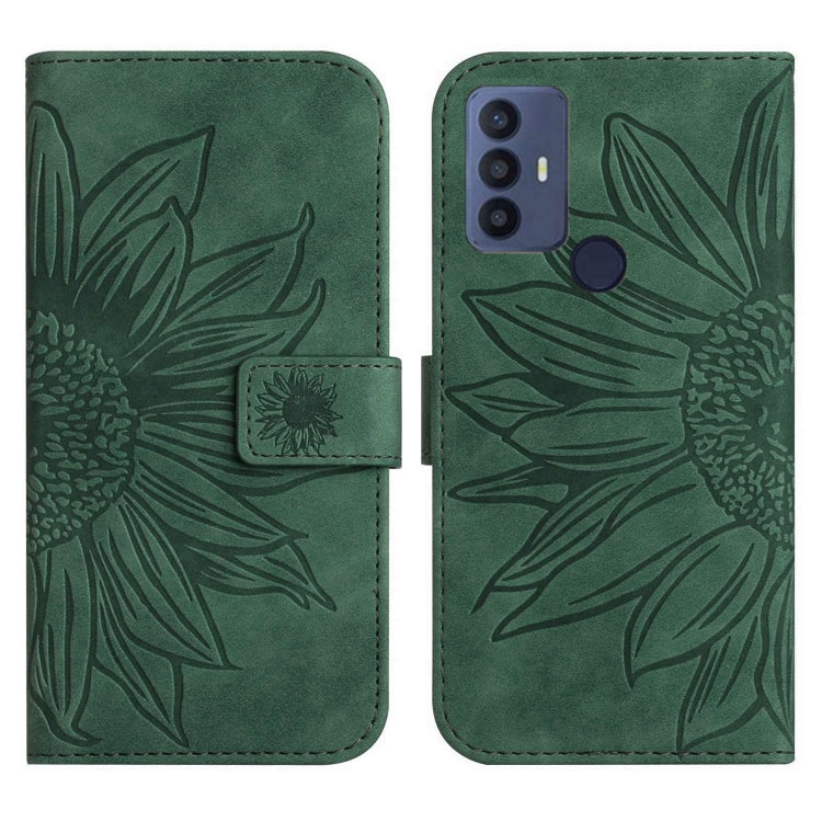 Funda Flip de Cuero para Sharp Aquos V6 y V6 Plus con Cordón y Diseño Sun Flower (Verde)