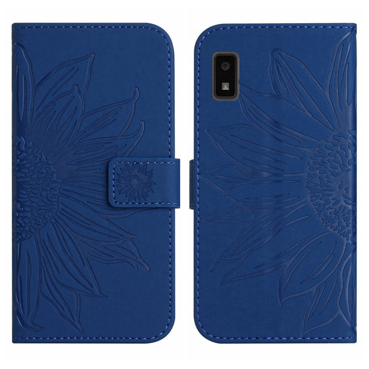 Funda Flip de Cuero para Sharp Aquos Wish con Cordón y Patrón Sun Flower (Azul Oscuro)