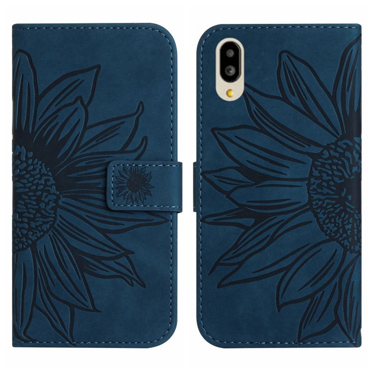 Funda Flip de Cuero para Sharp Simple Sumaho 6 con Cordón y Diseño Sun Flower (Azul Tinta)