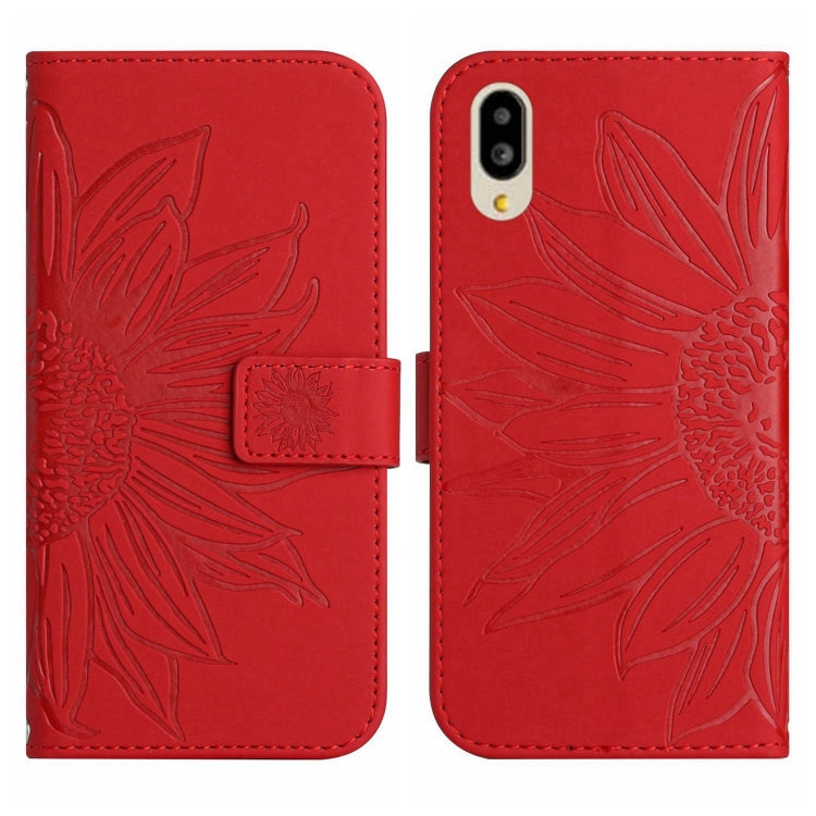 Funda Flip de Cuero para Sharp Simple Sumaho 6 con Cordón y Diseño Sun Flower (Rojo)
