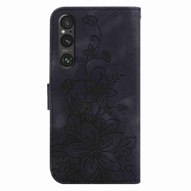 Estuche de Teléfono Sony Xperia 1 V Lily Cuero En Relieve (Negro)