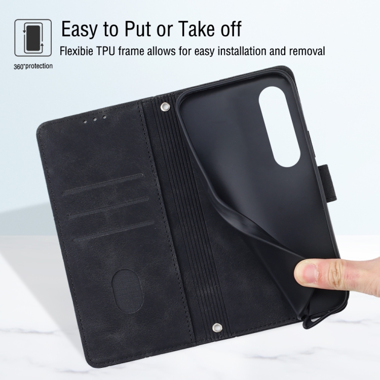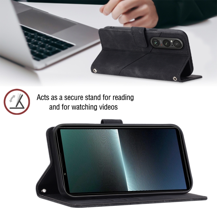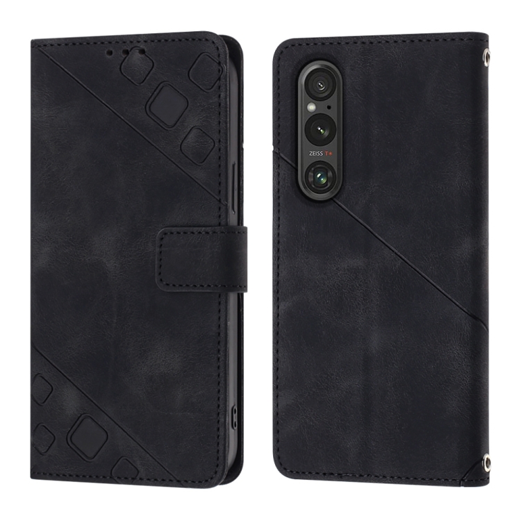 Estuche para Sony Xperia 1 V Skin-Feel de Cuero En Relieve (Negro)