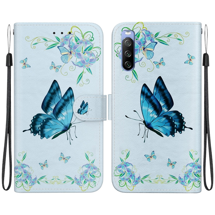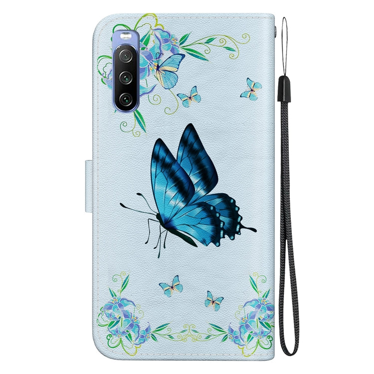 Estuche para Sony Xperia 10 III de Cuero con Dibujo Coloreado y Textura de Cristal (Azul)