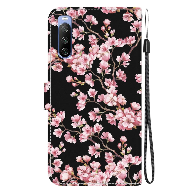Funda para Sony Xperia 10 III de Cuero con Dibujo Coloreado y Textura de Cristal (Flor de Ciruelo)