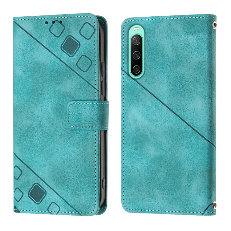 Estuche para Sony Xperia 10 V Skin-Feel de Cuero En Relieve (Verde)