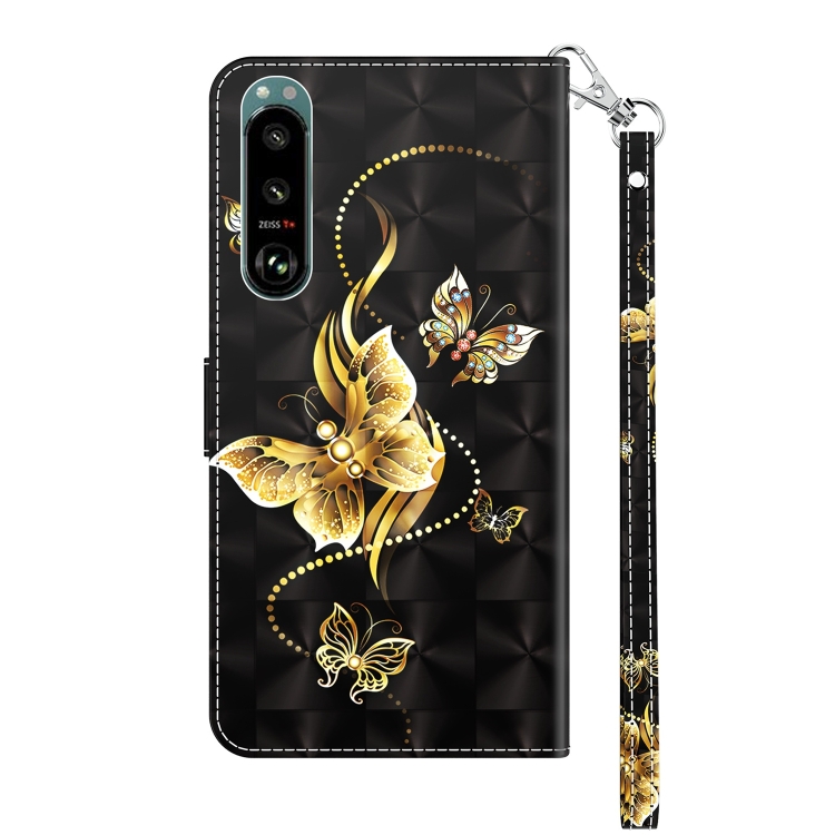 Estuche para Sony Xperia 5 III de Cuero Pintado 3D Mariposa Golondrina Dorada