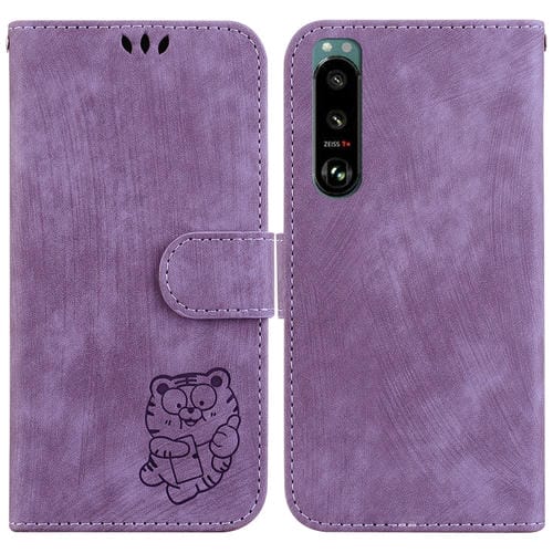 Funda para Sony Xperia 5 III de Cuero con Relieve Little Tiger (Púrpura)