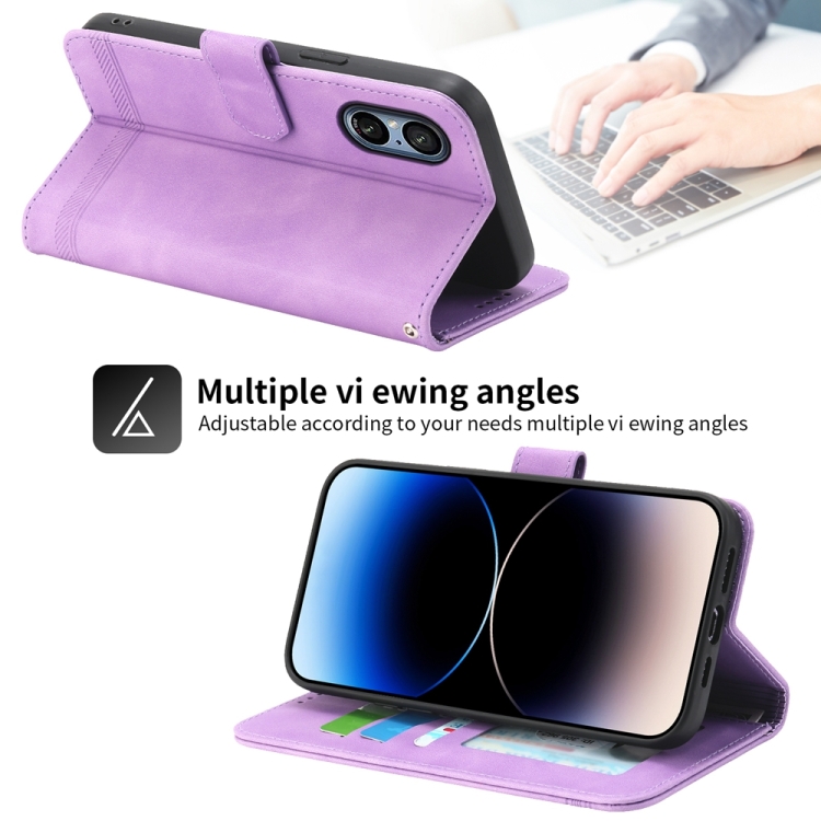 Funda TPU + Cuero PU Dierfeng Dream Line para Sony Xperia 5 V (Púrpura)