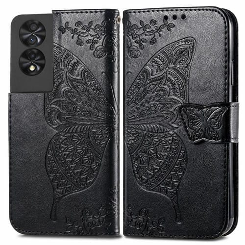 Funda de Cuero para TCL 40 Nxtpaper 4G Butterfly Love Flower en Relieve (Negro)