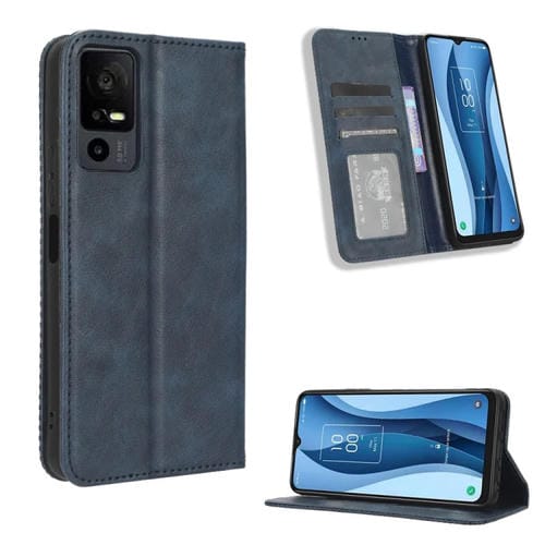 Funda de Cuero para TCL 40 XL con Hebilla Magnética y Textura Retro (Azul)