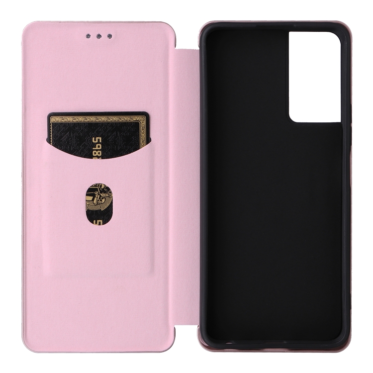 Funda de Cuero para TCL 40Se con Tapa Textura de Fibra de Carbono (Rosa)
